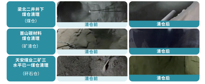 目前,中感智能清仓机器人已服务多家大型煤炭企业,覆盖井下中转仓、地面特大容量仓、多仓联动清理等复杂场景,累计清理煤仓近百座,实现零安全事故。